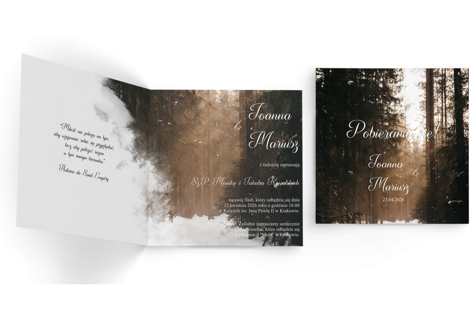 Zaproszenia ślubne Las - Składane Kwadrat Motyw 4