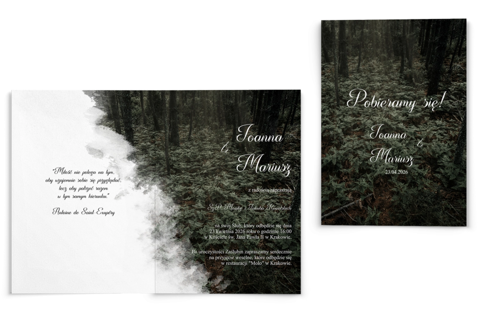 Wszystkie treści zaproszenia oraz dodatkowych wkładek są dowolnie personalizowane. Możesz zmienić każdą treść na swoim zaproszeniu. Podczas wypełniania Formularza Personalizacji opisz nam jak chcesz, aby wyglądało Twoje zaproszenie. Grafik przygotuje projekt skrojony specjalnie dla Ciebie.