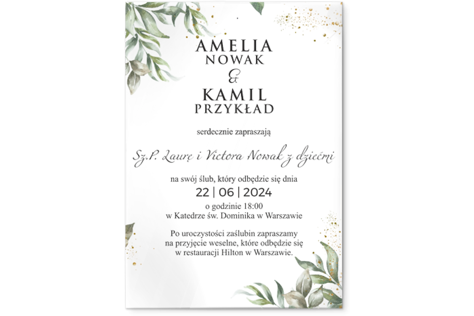 | Rozmiar zaproszenia | 148x105 mm (+- 2mm) |