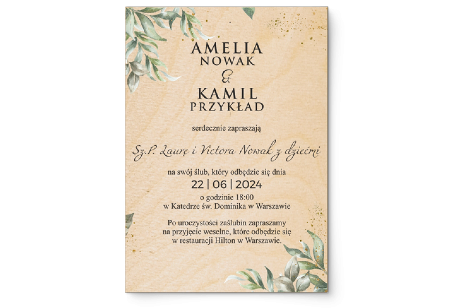 Zaproszenia ślubne Leaves- Drewniane Motyw 1