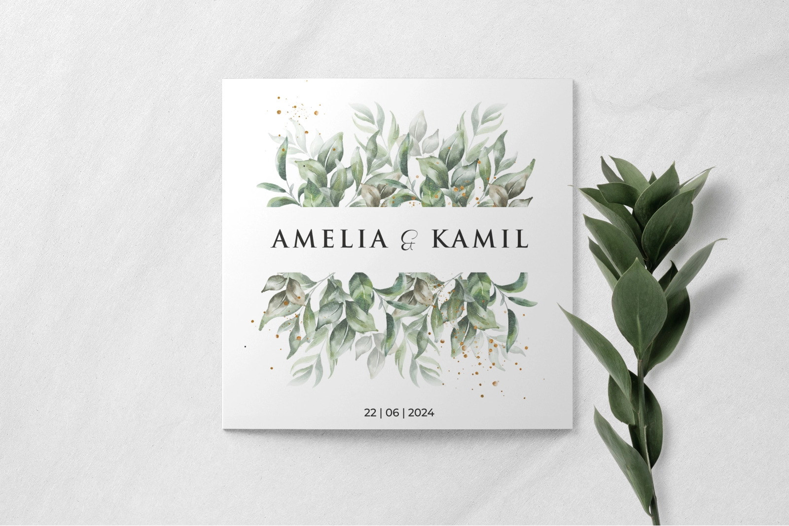 Zaproszenia ślubne Leaves - Składane Kwadrat Motyw 1