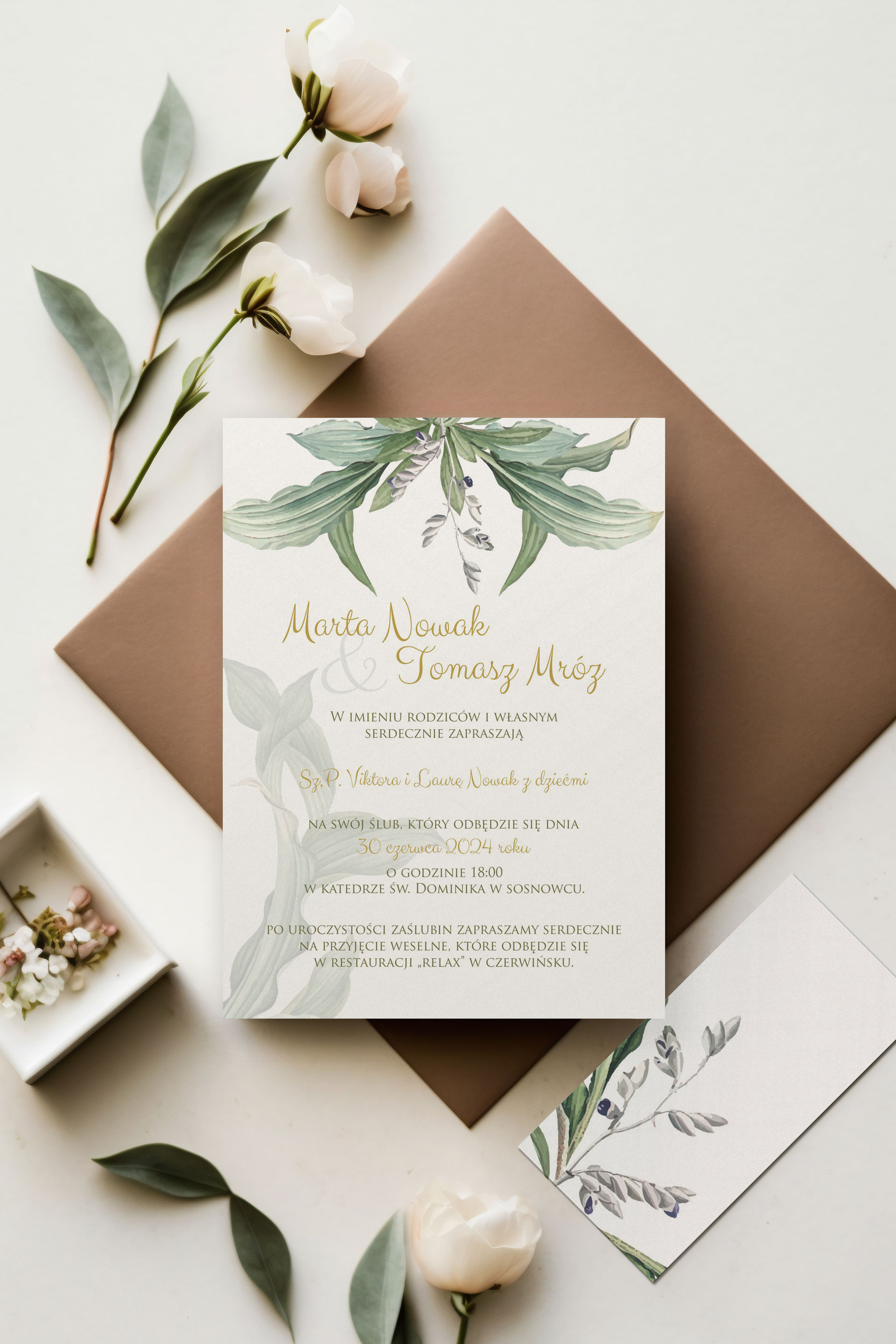 Piękne zaproszenia ślubne z motywami liściastymi, które możesz dowolnie spersonalizować. Sprawdź poniższe opcje.