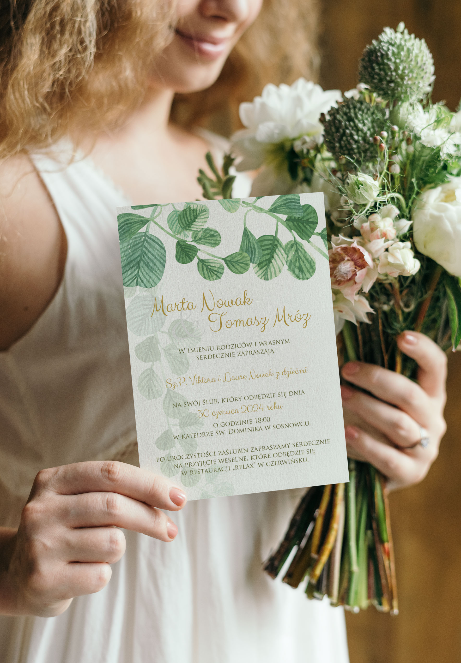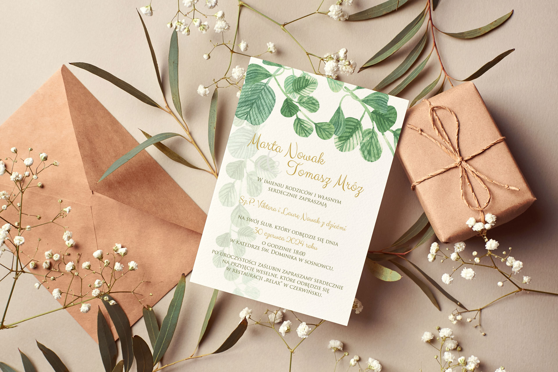 Piękne zaproszenia ślubne z motywami liściastymi, które możesz dowolnie spersonalizować. Sprawdź poniższe opcje.