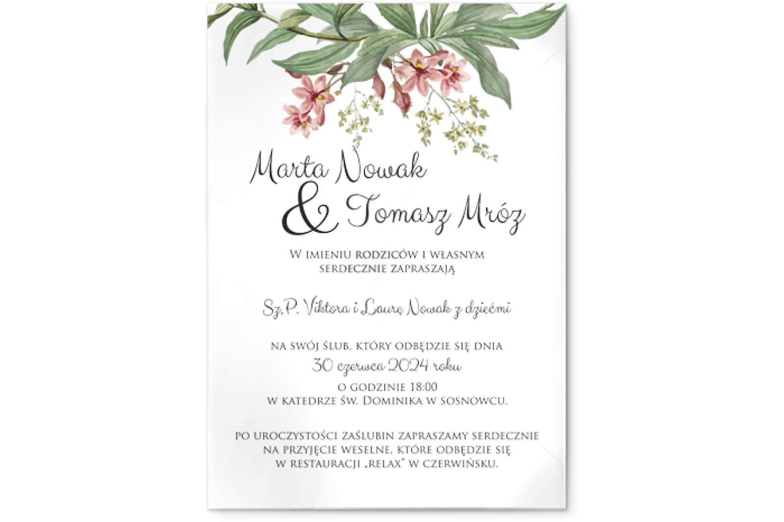 | Rozmiar zaproszenia | 148x105 mm (+- 2mm) |