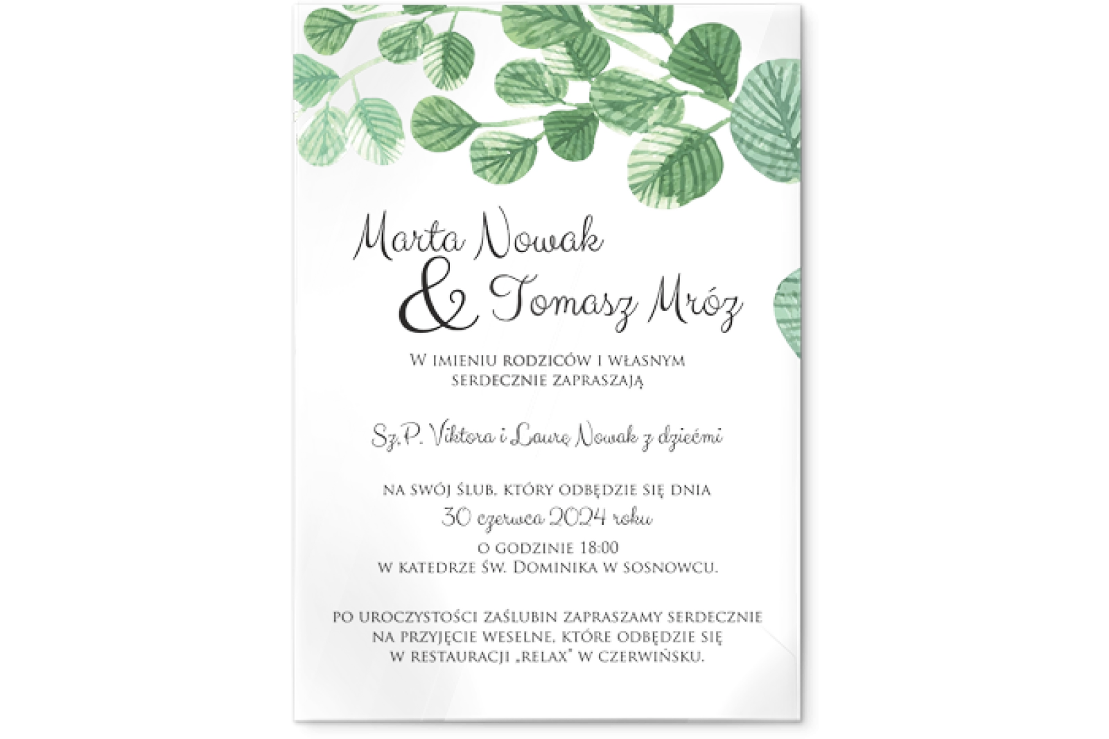 | Rozmiar zaproszenia | 148x105 mm (+- 2mm) |