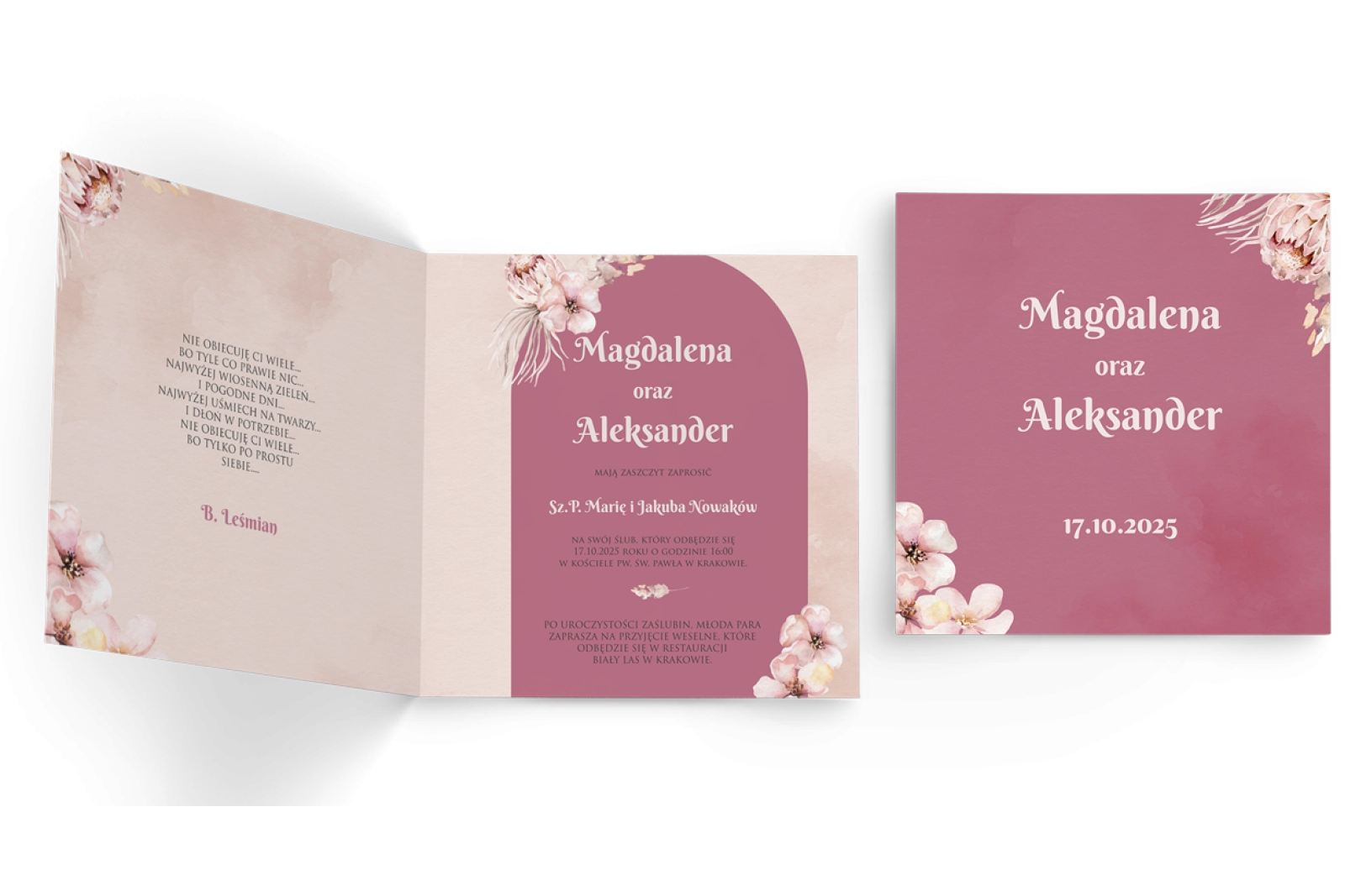 Zaproszenia ślubne Loretta - Składane Kwadrat Motyw 1