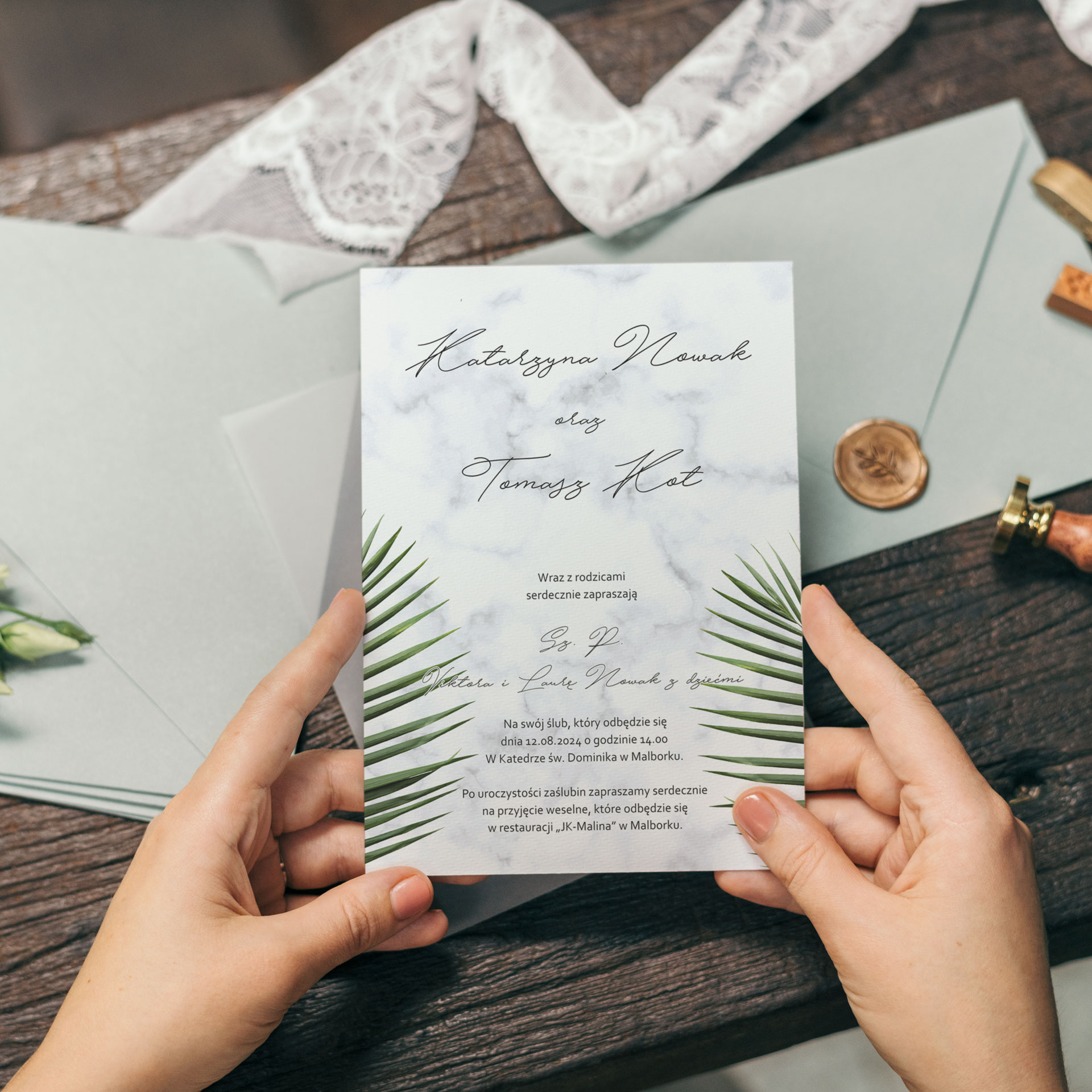 Zaproszenia ślubne Marble leaf - Motyw 1