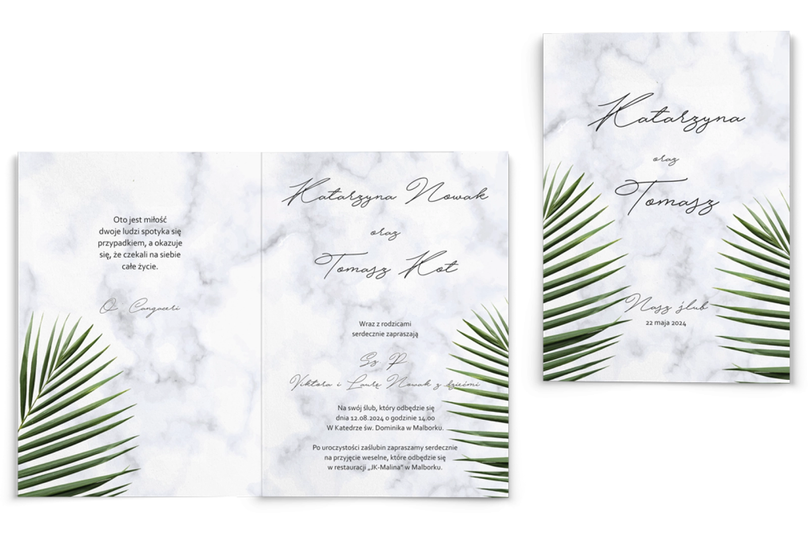 Zaproszenia ślubne Marble leaf - Składane Motyw 1