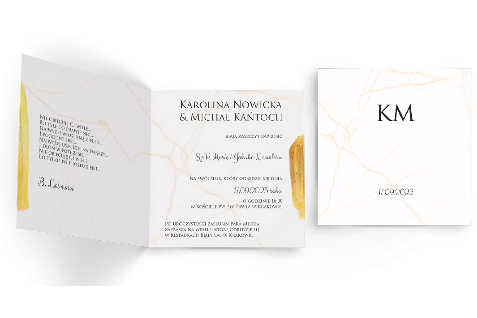 Zaproszenia ślubne Marble - Składane Kwadrat Motyw 1