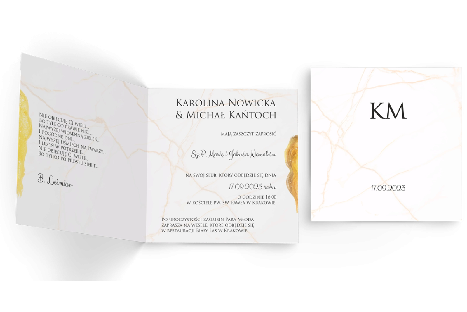 Zaproszenia ślubne Marble - Składane Kwadrat Motyw 3