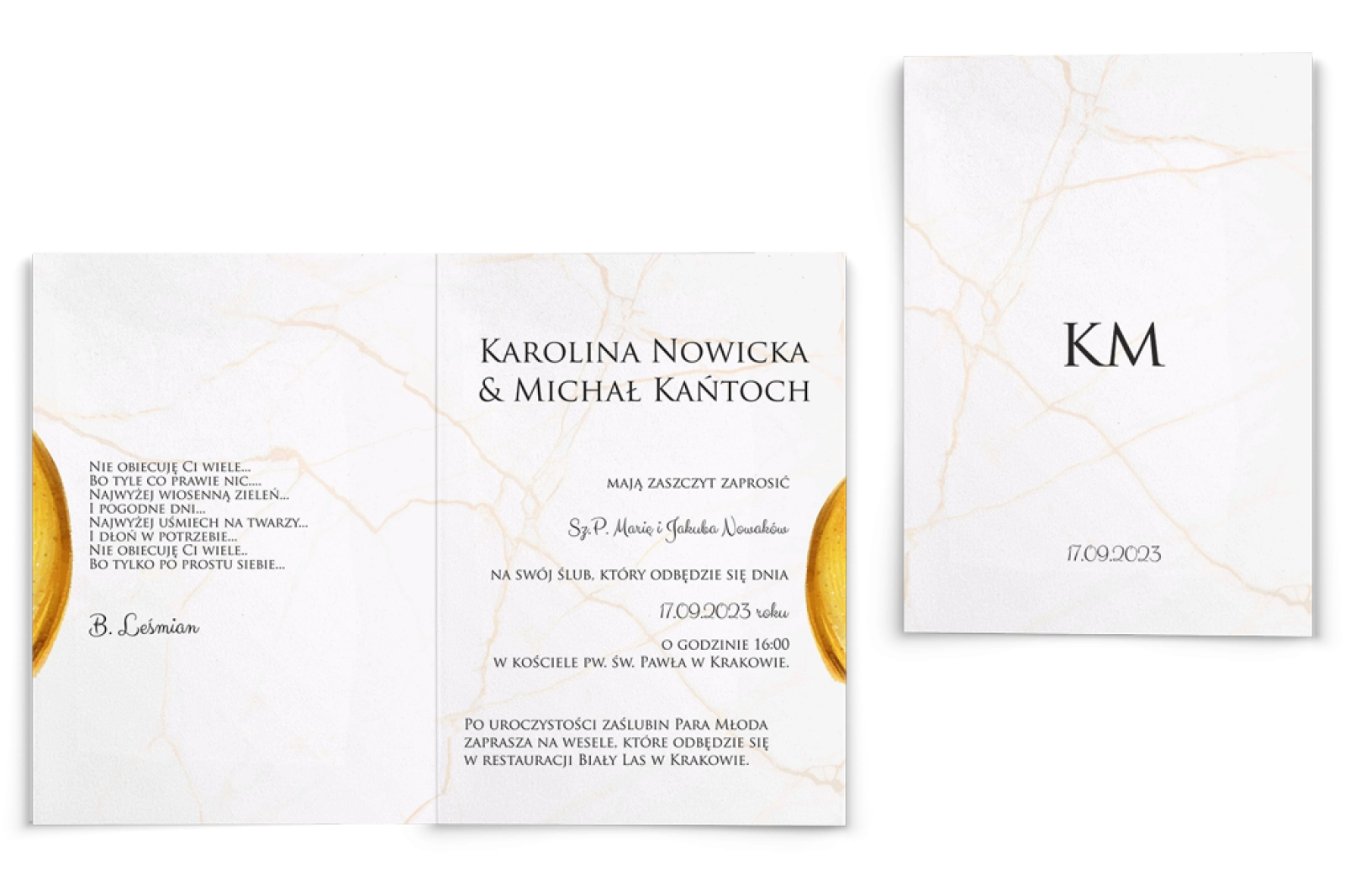 Wszystkie treści zaproszenia oraz dodatkowych wkładek są dowolnie personalizowane. Możesz zmienić każdą treść na swoim zaproszeniu. Podczas wypełniania Formularza Personalizacji opisz nam jak chcesz, aby wyglądało Twoje zaproszenie. Grafik przygotuje projekt skrojony specjalnie dla Ciebie.