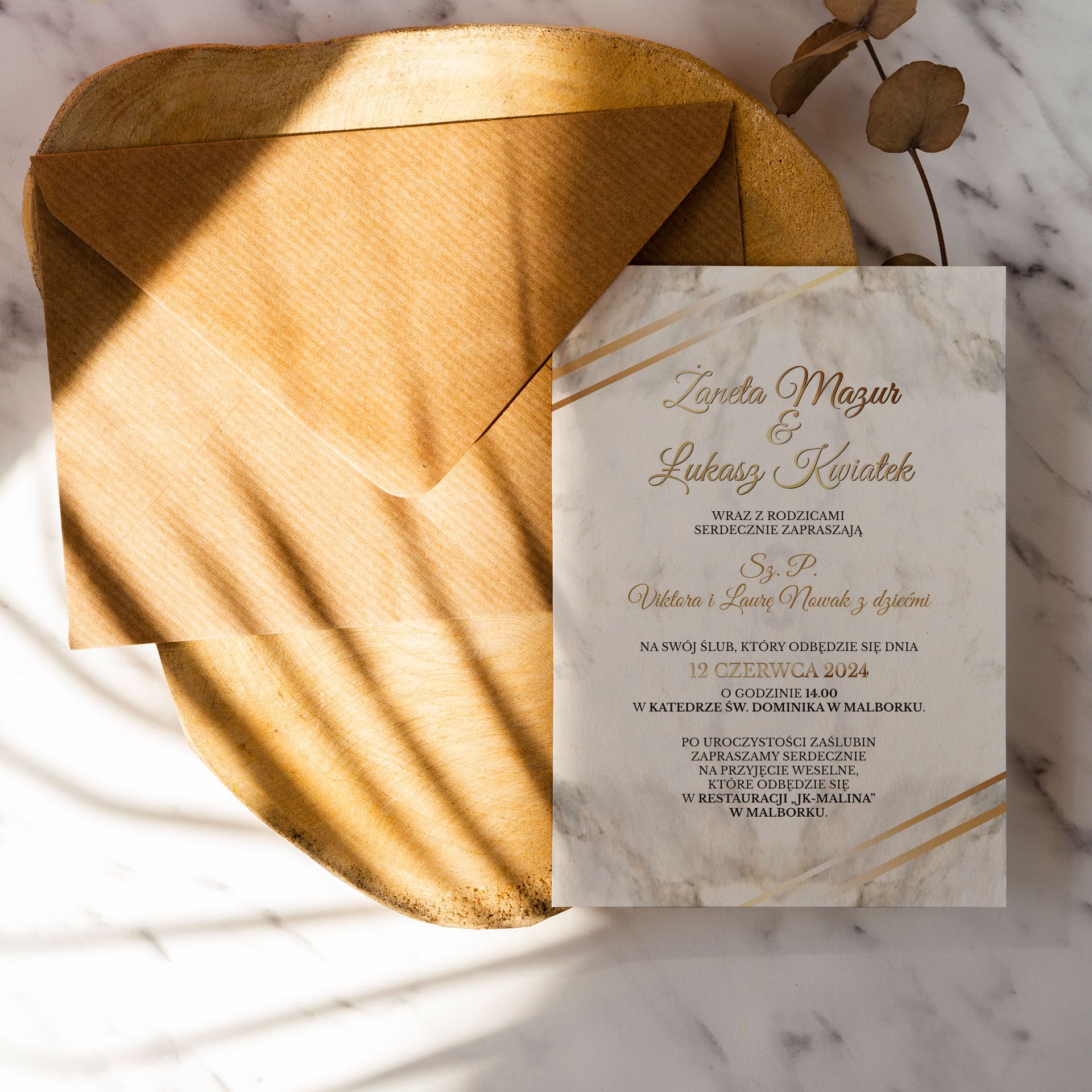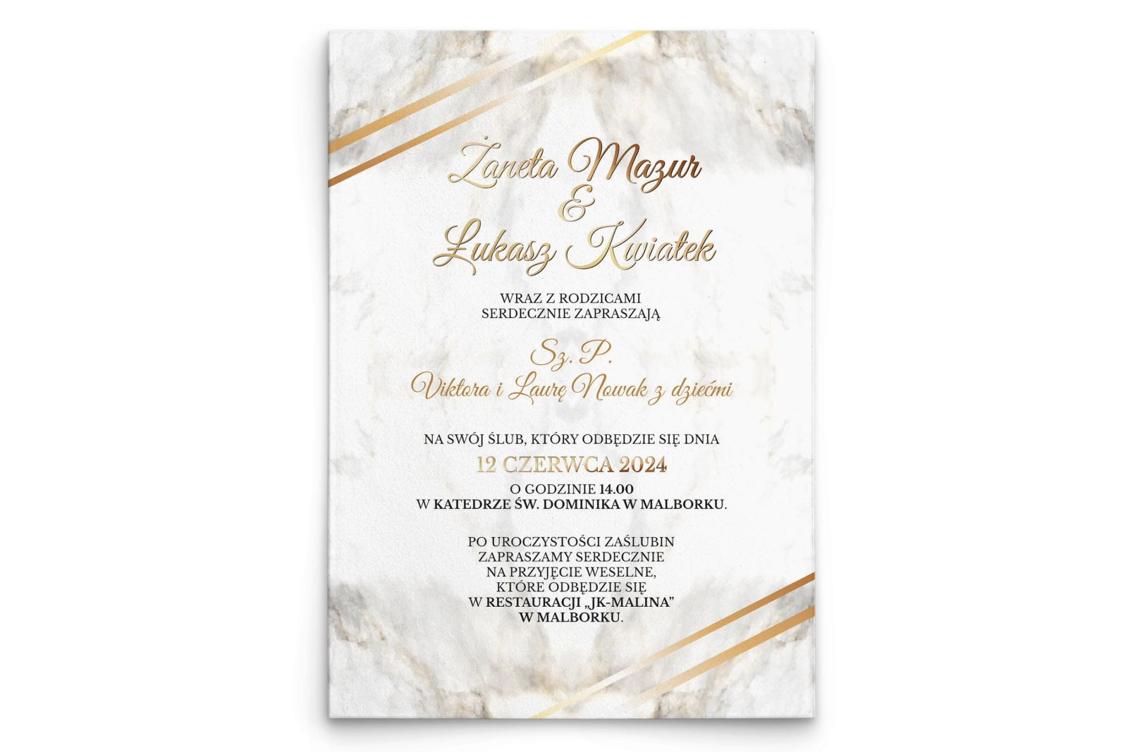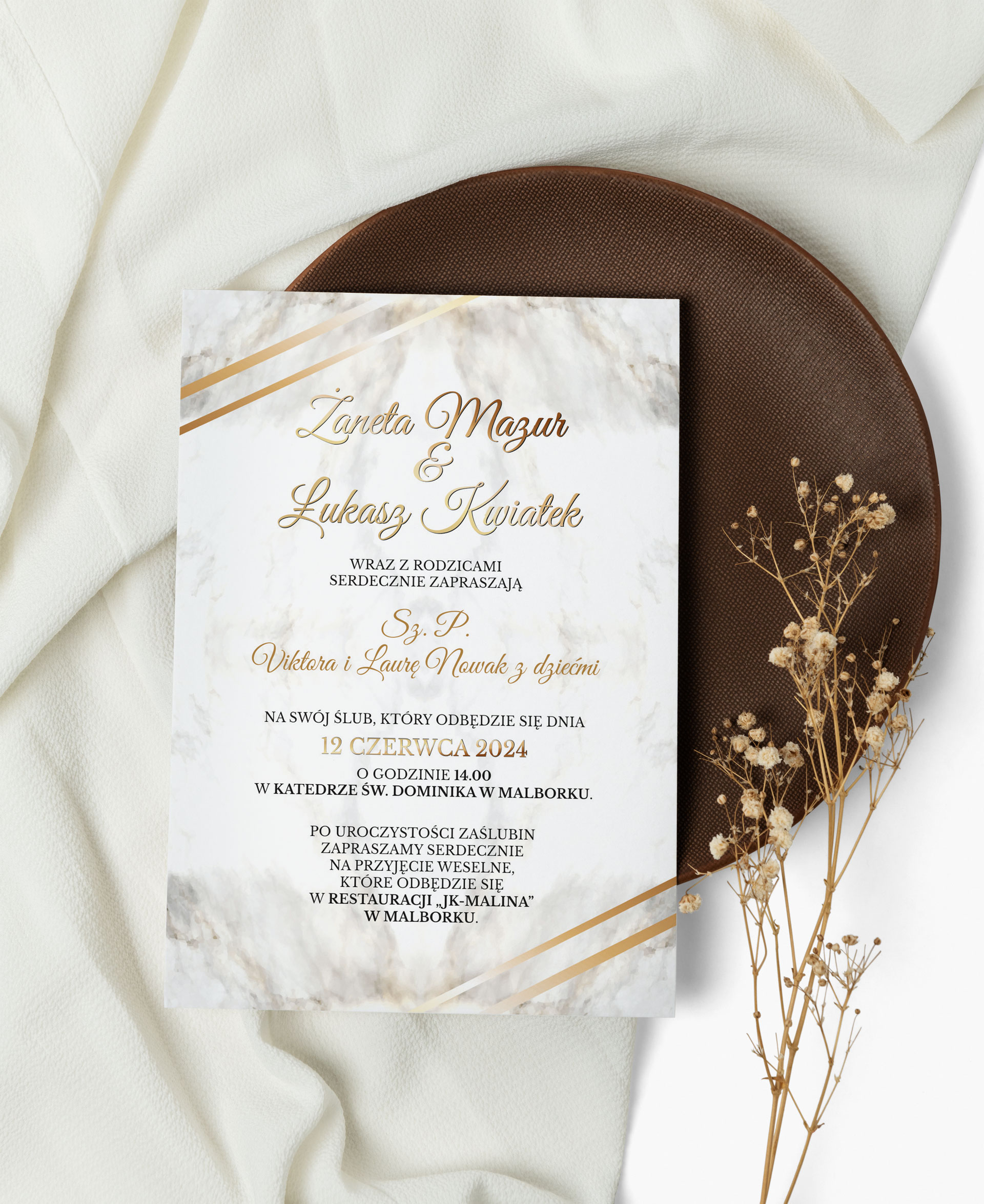 Zaproszenia ślubne Marmur & Złoto - Motyw 1