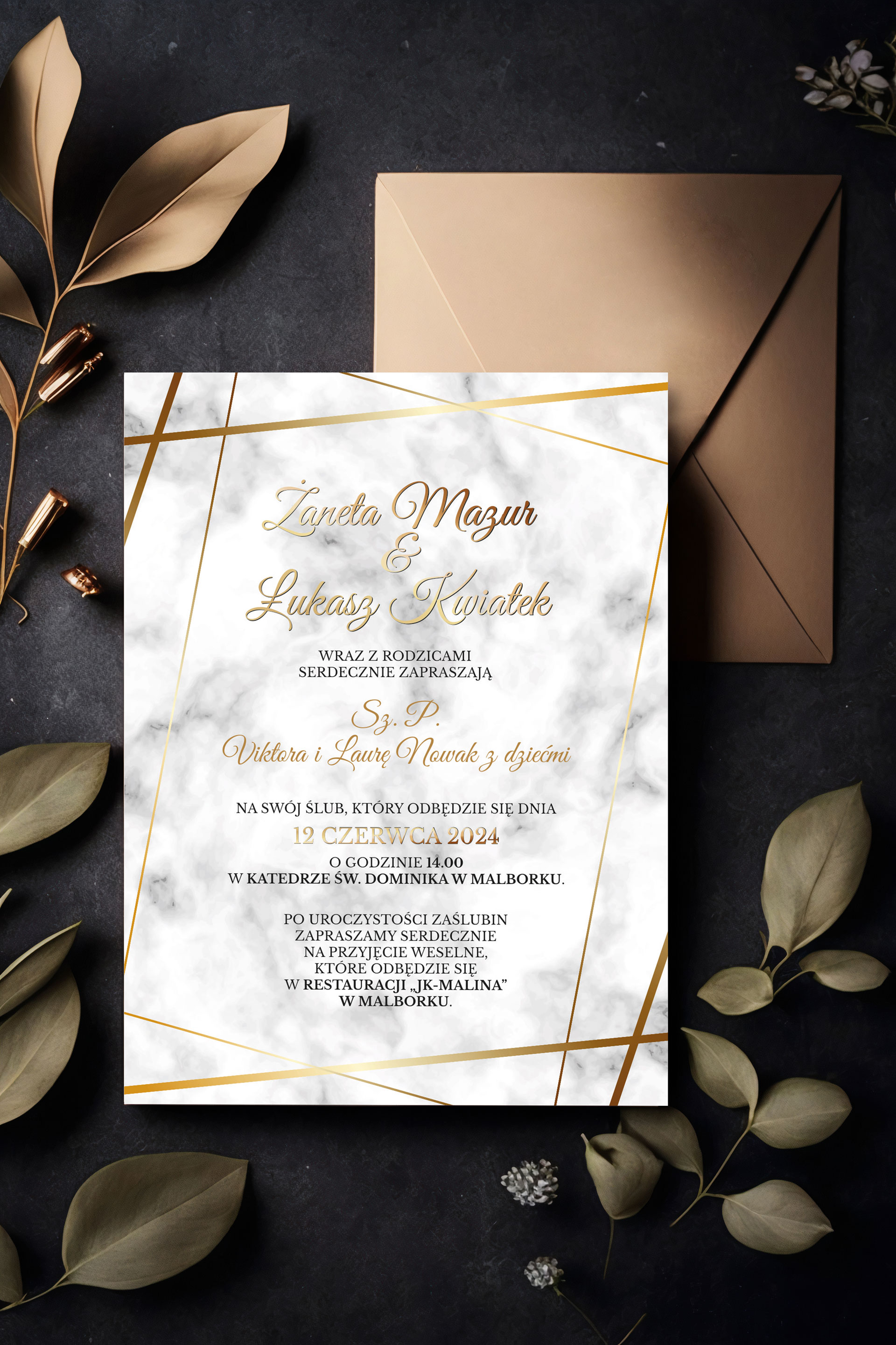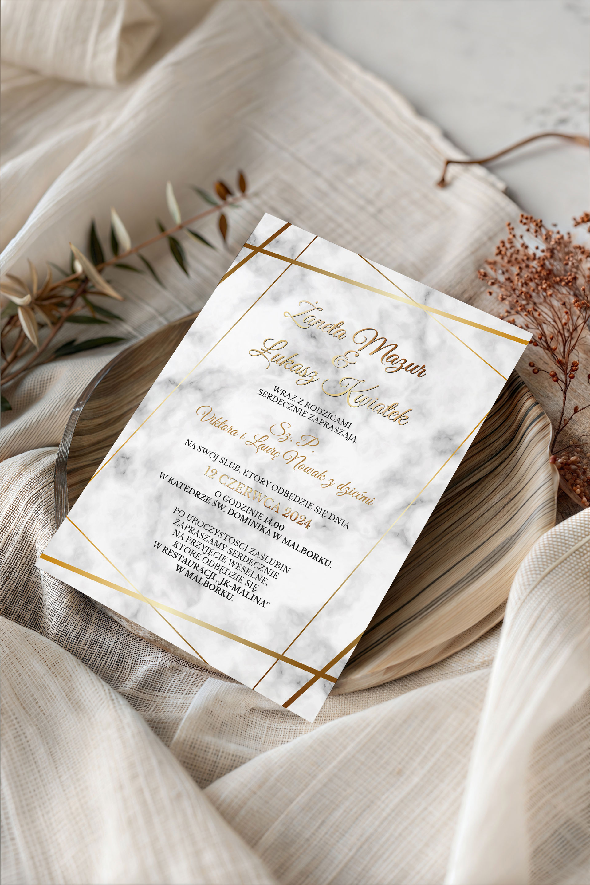 Zaproszenia ślubne Marmur & Złoto - Motyw 2