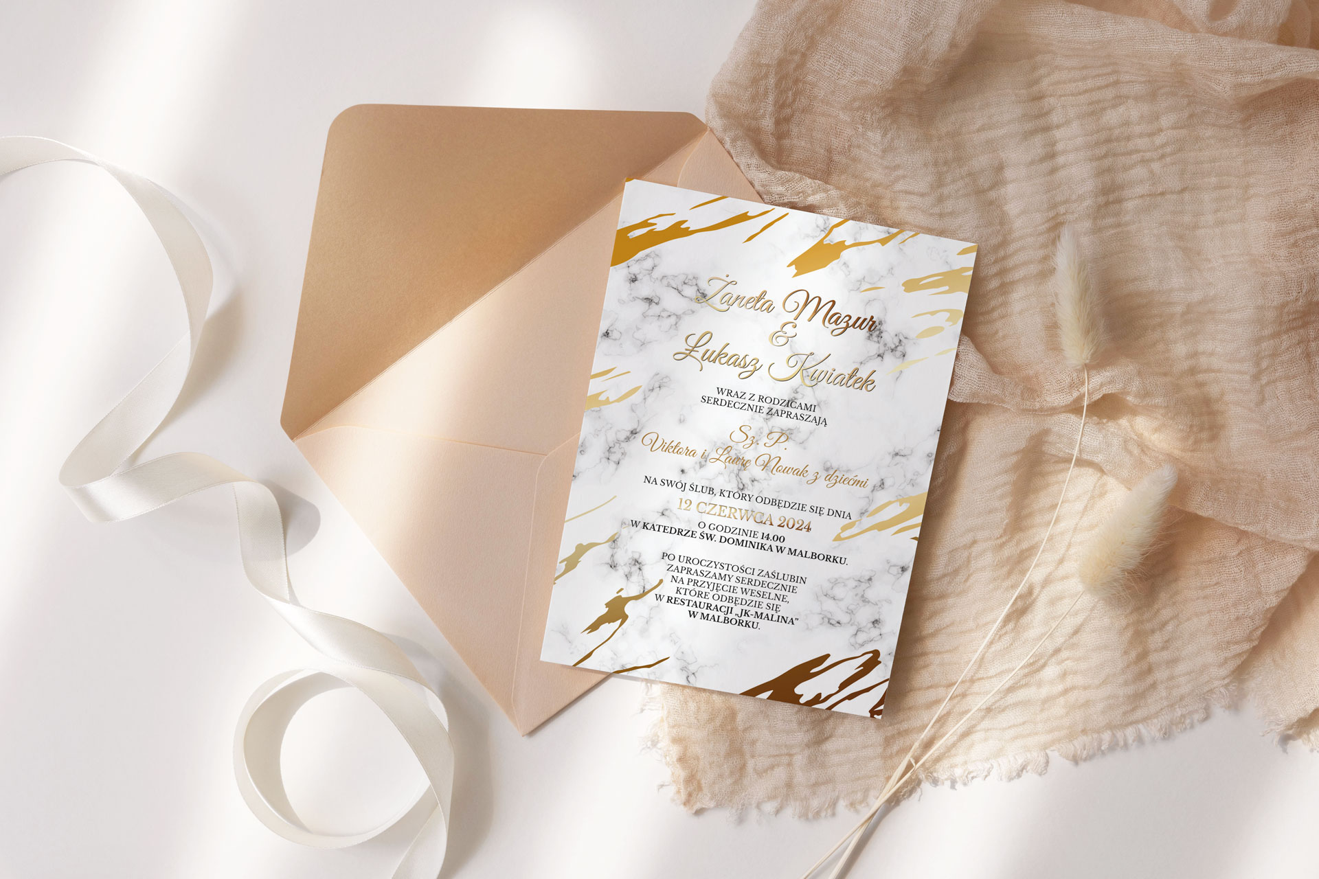 Zaproszenia ślubne Marmur & Złoto - Motyw 3