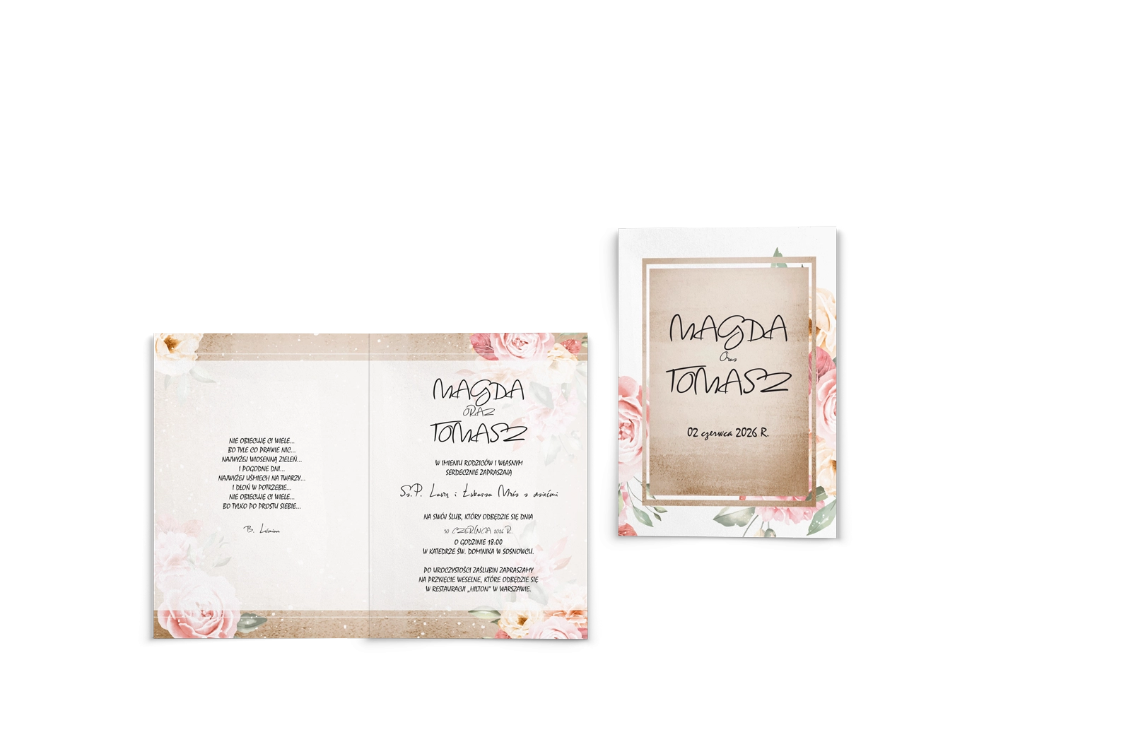 Rozmiar zaproszenia z papierem ozdobnym 150x108 mm (+- 2mm)