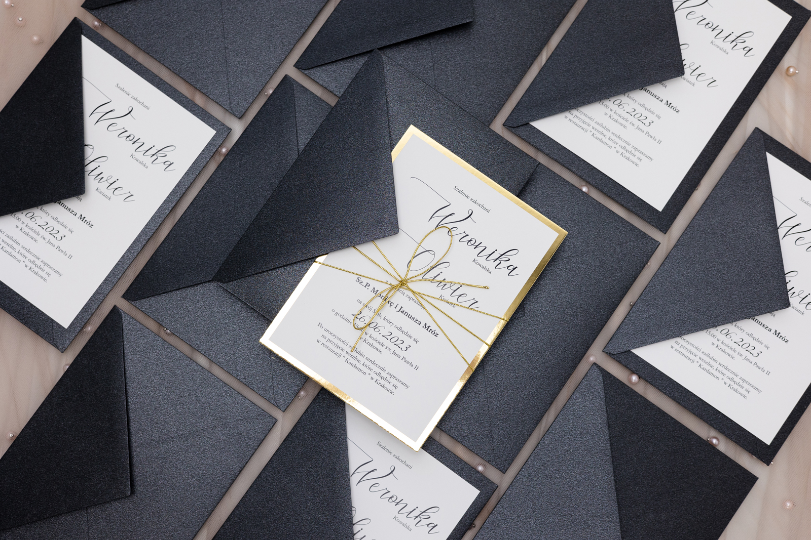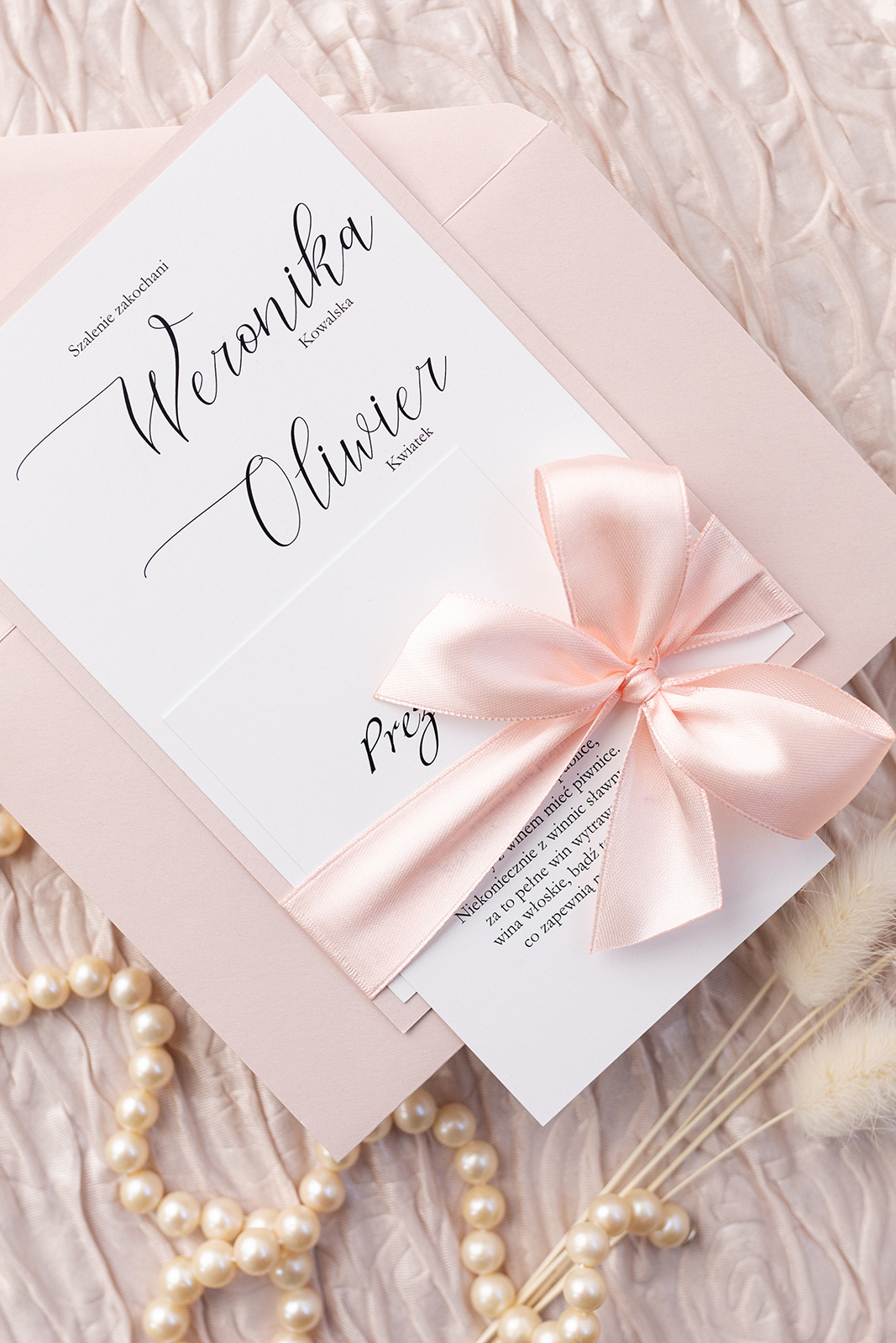 Każda perła jest aplikowana indywidualnie, co sprawia, że każde zaproszenie staje się niepowtarzalne. Ze względu na ręczne wykonanie, układ perełek może delikatnie różnić się między egzemplarzami.