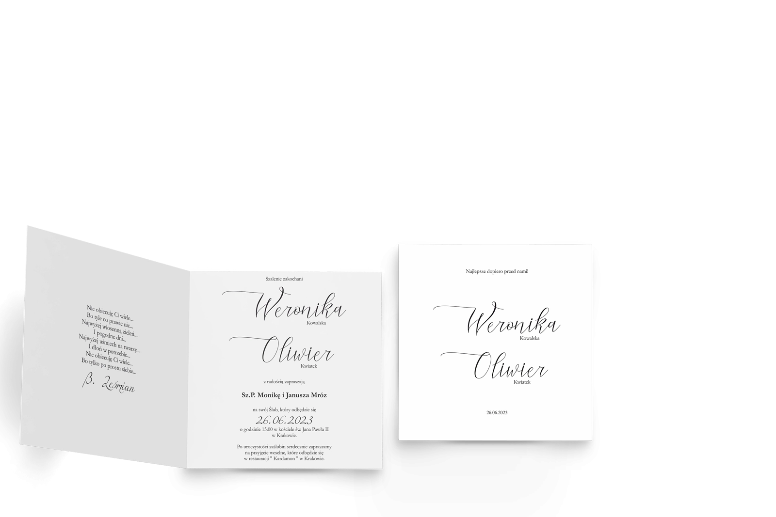 Zaproszenia ślubne Minimalistyczne - Składane Kwadrat Motyw 1
