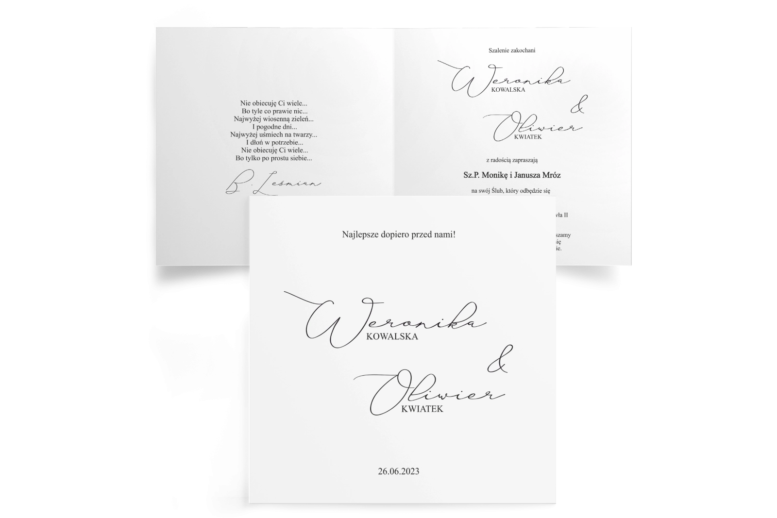 Zaproszenia ślubne Minimalistyczne - Składane Kwadrat Motyw 3