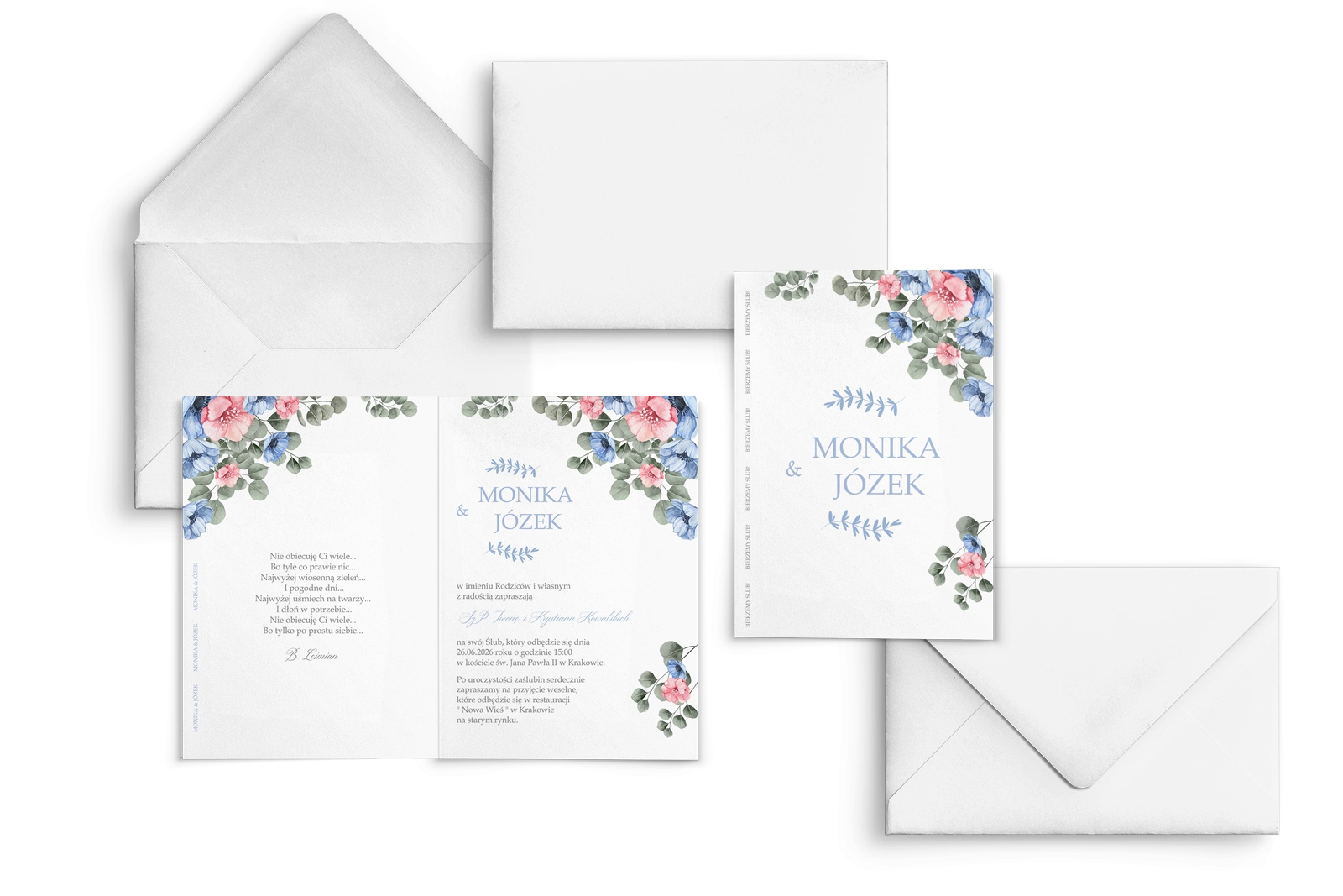 Wszystkie treści zaproszenia oraz dodatkowych wkładek są dowolnie personalizowane. Możesz zmienić każdą treść na swoim zaproszeniu. Podczas wypełniania Formularza Personalizacji opisz nam jak chcesz, aby wyglądało Twoje zaproszenie. Grafik przygotuje projekt skrojony specjalnie dla Ciebie.