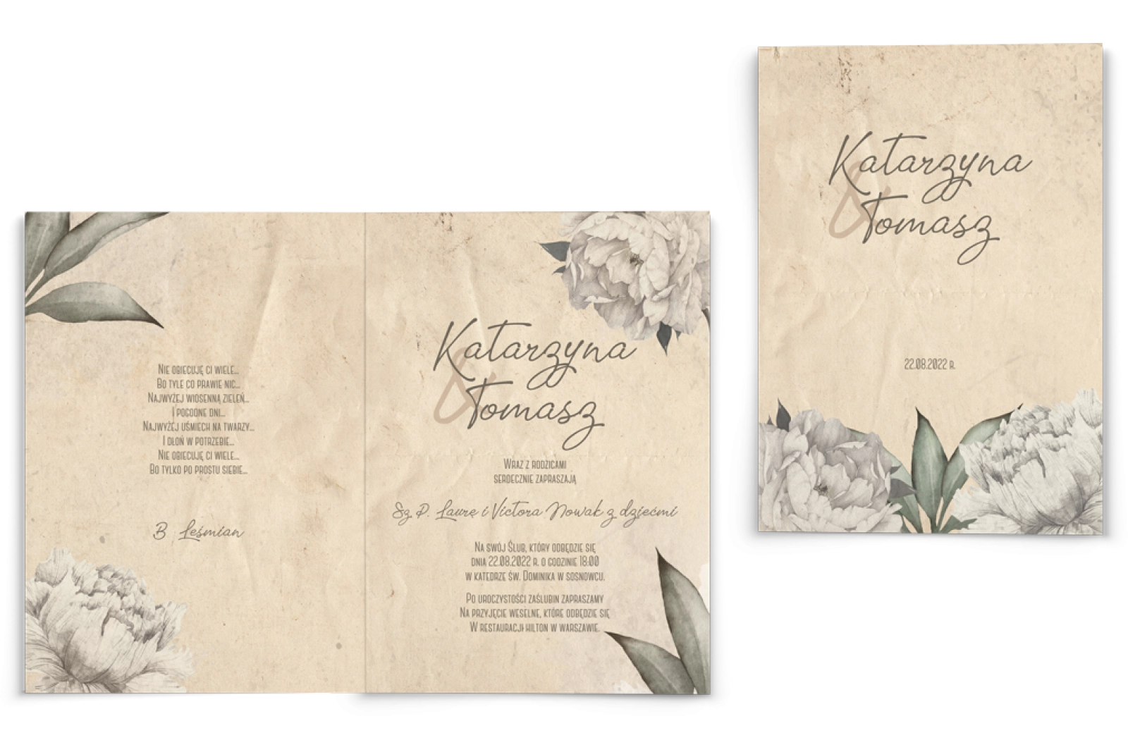 Zaproszenia ślubne Old Fashion - Składane Motyw 1