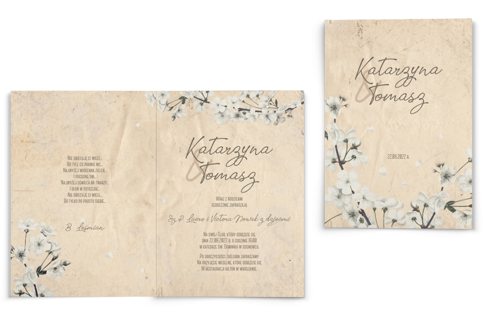 Zaproszenia ślubne Old Fashion - Składane Motyw 2