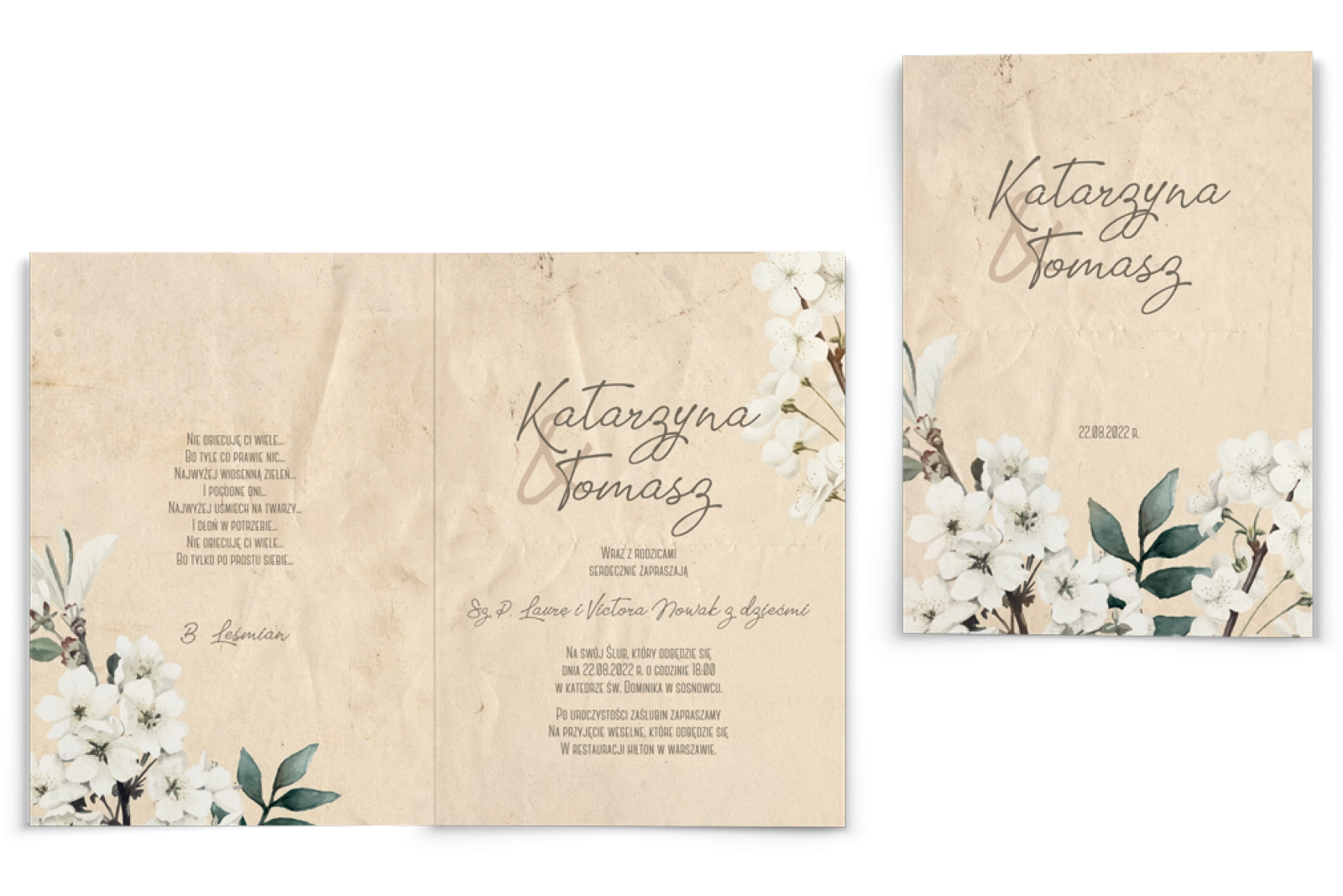 Zaproszenia ślubne Old Fashion - Składane Motyw 3