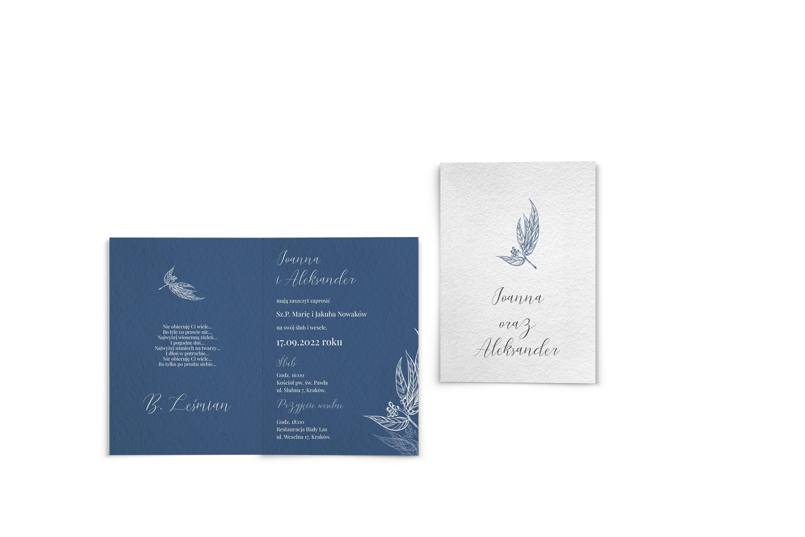 Wszystkie treści zaproszenia oraz dodatkowych wkładek są dowolnie personalizowane. Możesz zmienić każdą treść na swoim zaproszeniu. Podczas wypełniania Formularza Personalizacji opisz nam jak chcesz, aby wyglądało Twoje zaproszenie. Grafik przygotuje projekt skrojony specjalnie dla Ciebie.