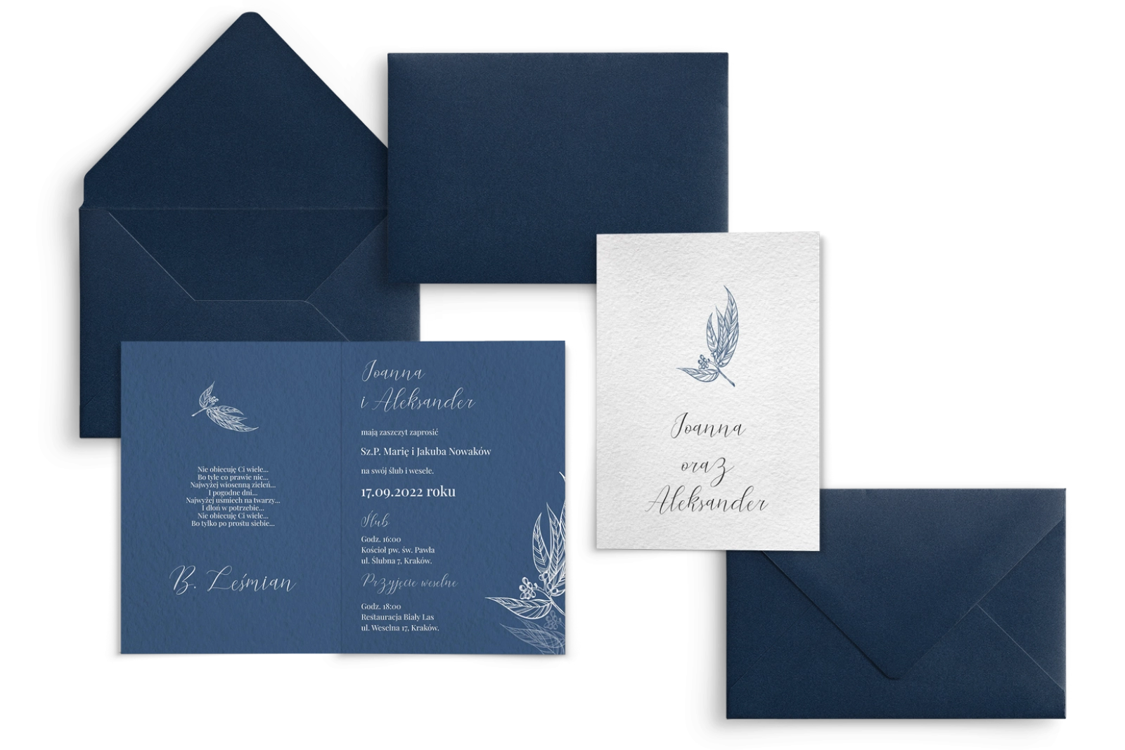 Wszystkie treści zaproszenia oraz dodatkowych wkładek są dowolnie personalizowane. Możesz zmienić każdą treść na swoim zaproszeniu. Podczas wypełniania Formularza Personalizacji opisz nam jak chcesz, aby wyglądało Twoje zaproszenie. Grafik przygotuje projekt skrojony specjalnie dla Ciebie.
