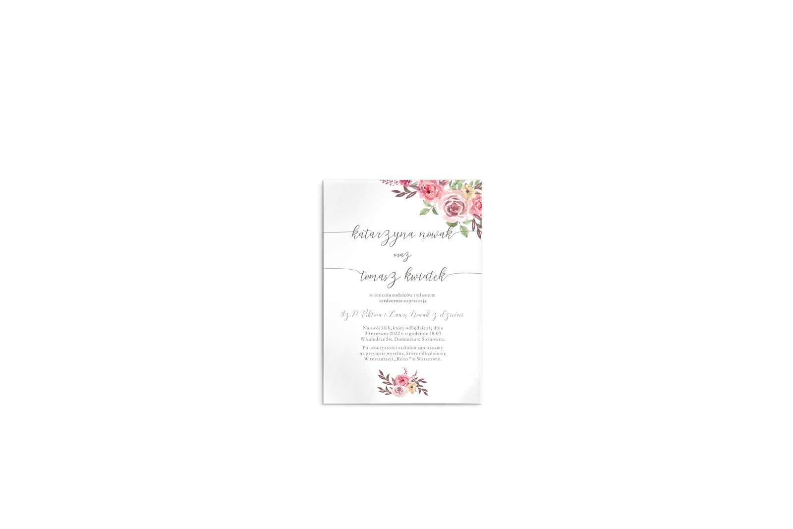 Rozmiar zaproszenia 148x105 mm (+- 2mm)