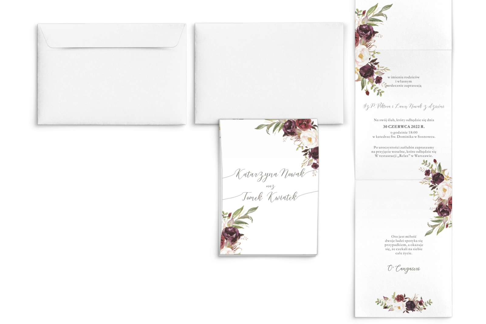 | Rozmiar zaproszenia | Rozłożone 426x100 mm (+- 2mm) |