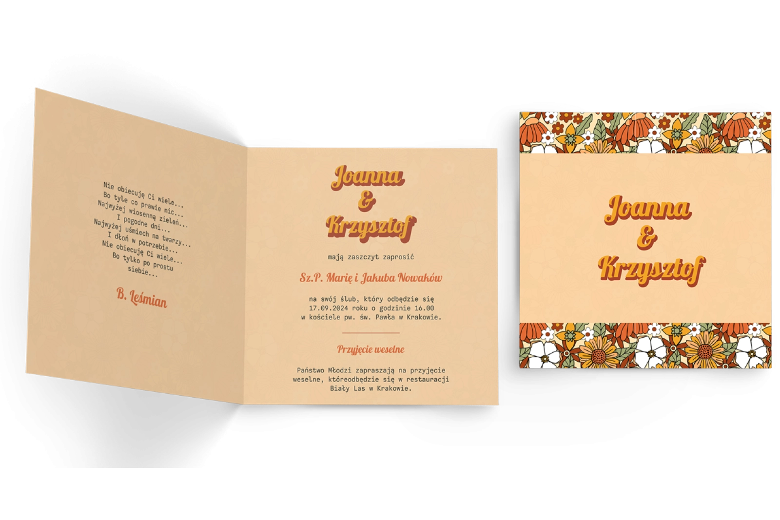 Zaproszenia ślubne Retro Style - Składane Kwadrat Motyw 1