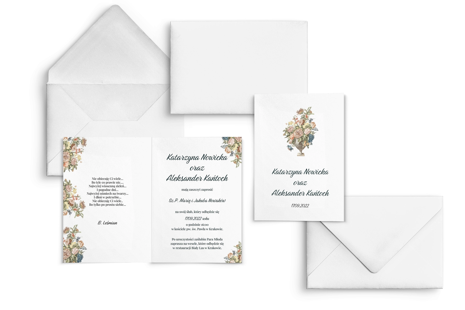 Wszystkie treści zaproszenia oraz dodatkowych wkładek są dowolnie personalizowane. Możesz zmienić każdą treść na swoim zaproszeniu. Podczas wypełniania Formularza Personalizacji opisz nam jak chcesz, aby wyglądało Twoje zaproszenie. Grafik przygotuje projekt skrojony specjalnie dla Ciebie.