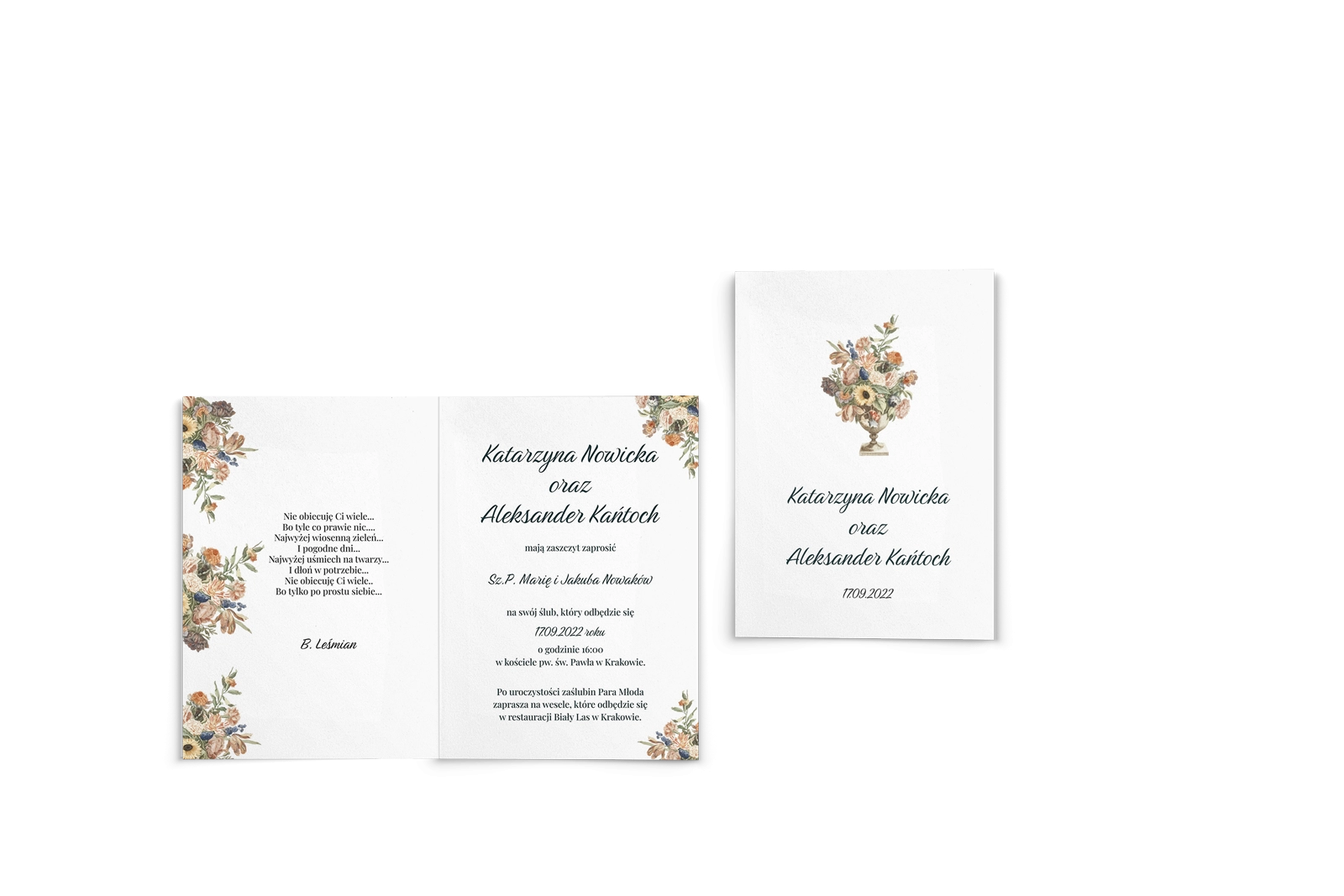 Wszystkie treści zaproszenia oraz dodatkowych wkładek są dowolnie personalizowane. Możesz zmienić każdą treść na swoim zaproszeniu. Podczas wypełniania Formularza Personalizacji opisz nam jak chcesz, aby wyglądało Twoje zaproszenie. Grafik przygotuje projekt skrojony specjalnie dla Ciebie.