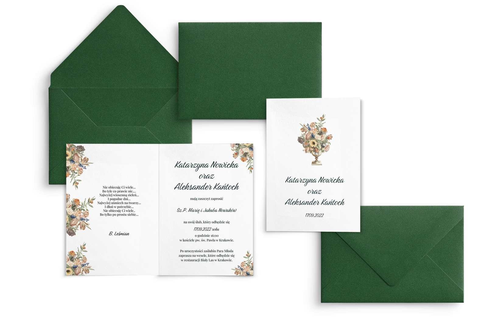 Wszystkie treści zaproszenia oraz dodatkowych wkładek są dowolnie personalizowane. Możesz zmienić każdą treść na swoim zaproszeniu. Podczas wypełniania Formularza Personalizacji opisz nam jak chcesz, aby wyglądało Twoje zaproszenie. Grafik przygotuje projekt skrojony specjalnie dla Ciebie.