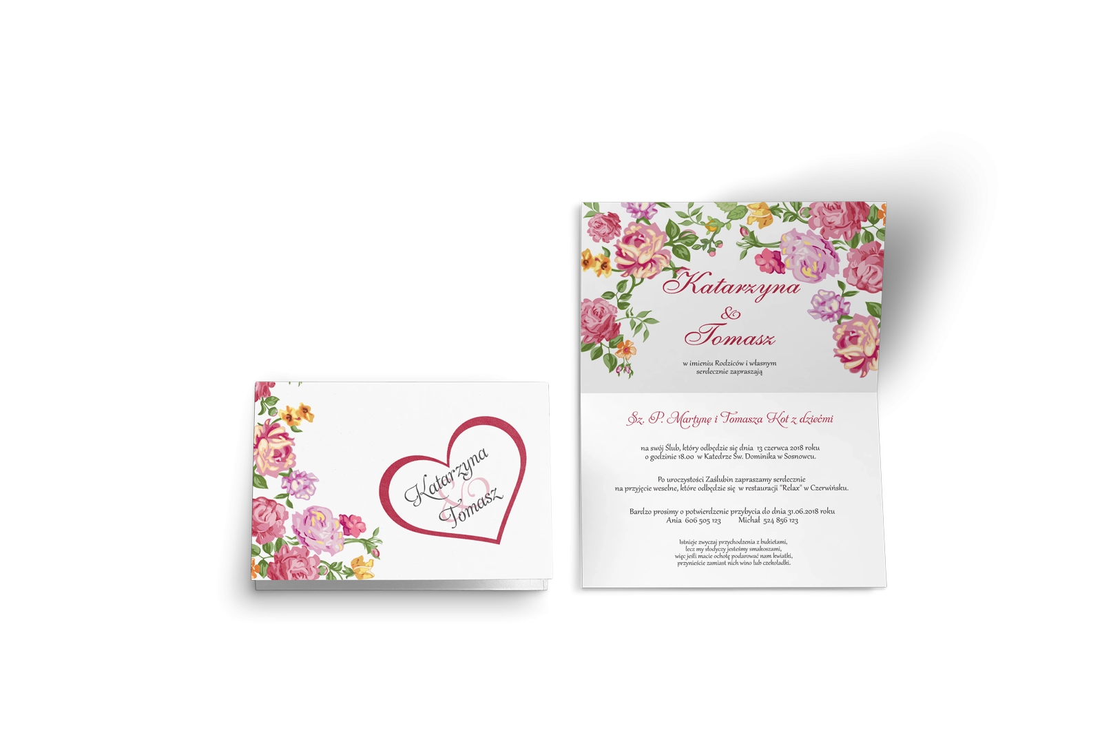 Zaproszenie ślubne Serca Kwiat - Motyw 6