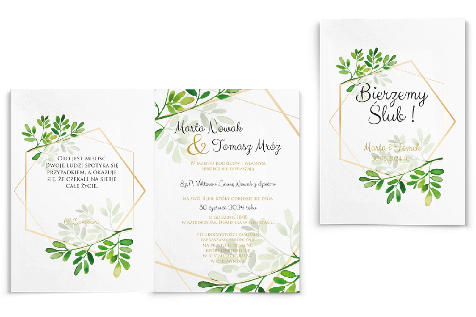 Na tej karcie produktu kupujesz Zaproszenia Ślubne Składane w konfiguracji określonej w specyfikacji. Nasze zaproszenia ślubne są drukowane na wybranym przez Ciebie papierze przy użyciu wysokiej jakości drukarki produkcyjnej, która zapewnia mocne, nasycone kolory oraz czytelny wyrazisty tekst.