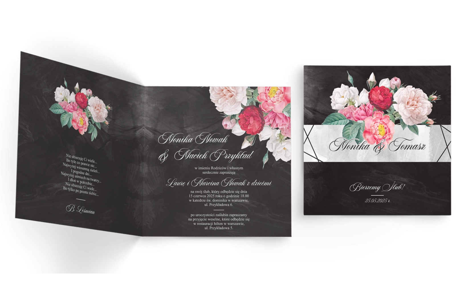Zaproszenia ślubne Black Flowers - Składane Kwadrat Motyw 2
