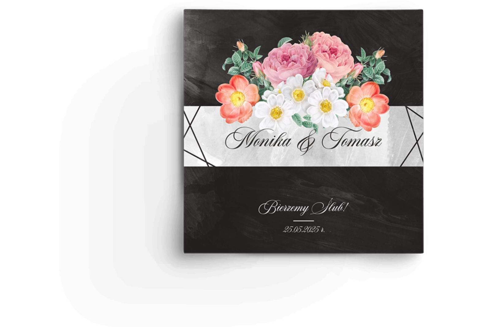 Zaproszenia ślubne Black Flowers - Składane Kwadrat Motyw 3