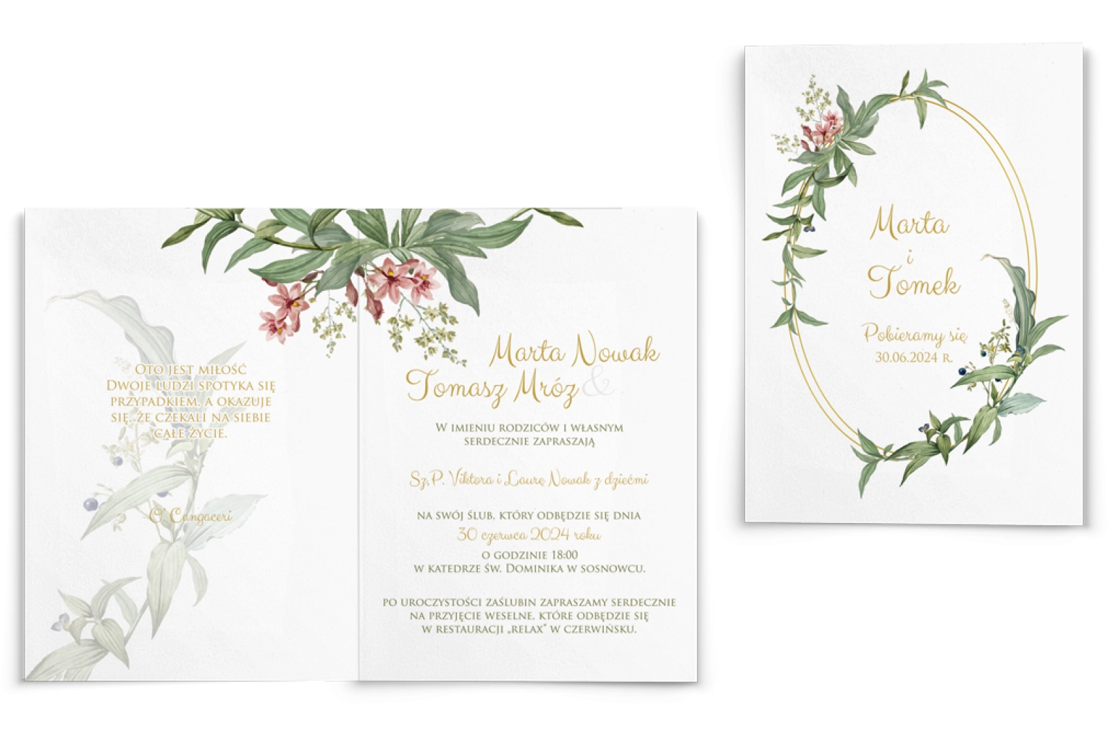 Zaproszenia ślubne Liście - Składane Motyw 2