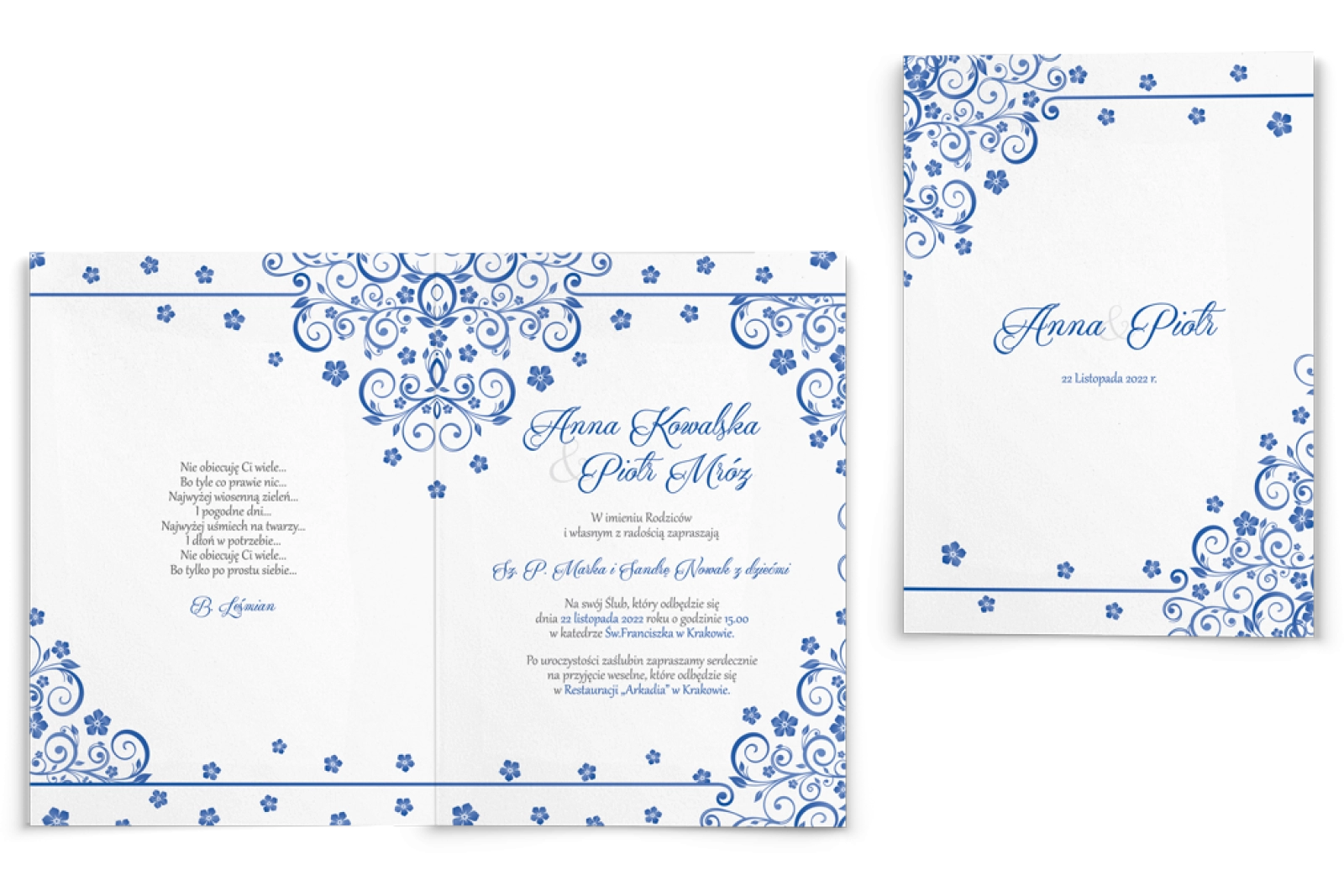 Zaproszenia ślubne Maja - Składane Motyw Niebieski