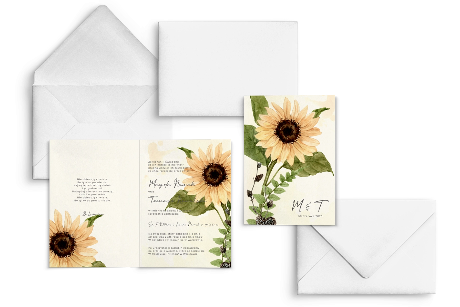 Wszystkie treści zaproszenia oraz dodatkowych wkładek są dowolnie personalizowane. Możesz zmienić każdą treść na swoim zaproszeniu. Podczas wypełniania Formularza Personalizacji opisz nam jak chcesz, aby wyglądało Twoje zaproszenie. Grafik przygotuje projekt skrojony specjalnie dla Ciebie.