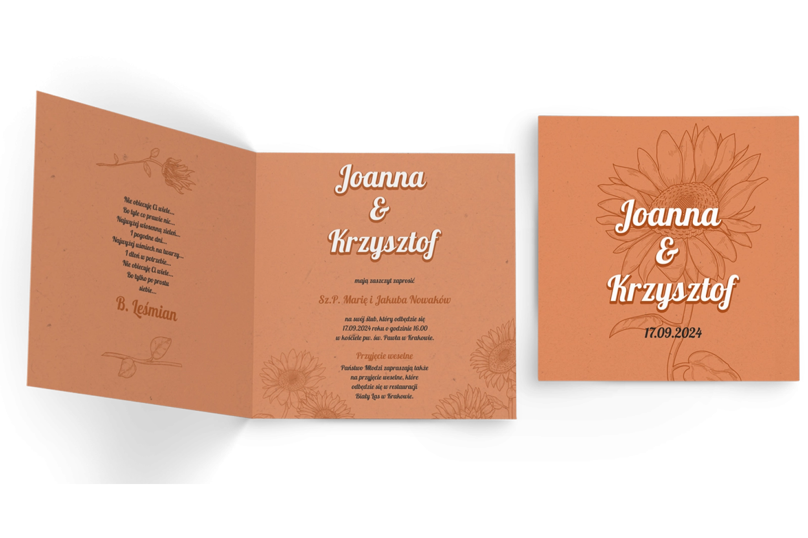 Zaproszenia ślubne Sunflowers - Składane Kwadrat Motyw 2