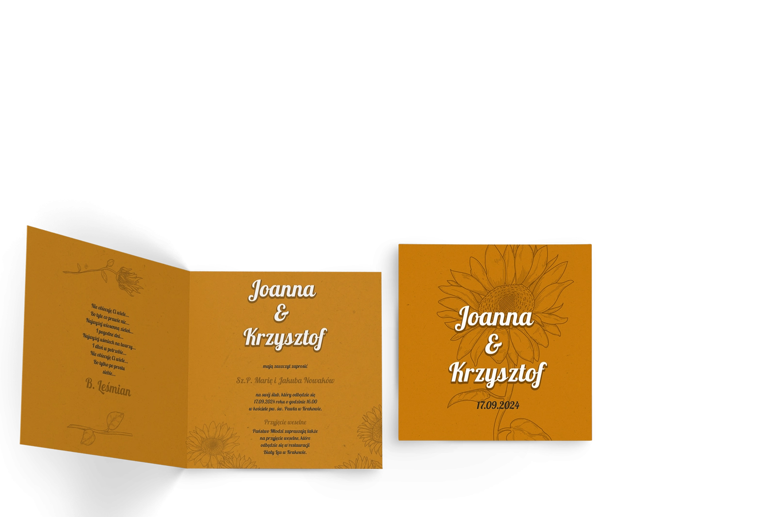 Zaproszenia ślubne Sunflowers - Składane Kwadrat Motyw 3