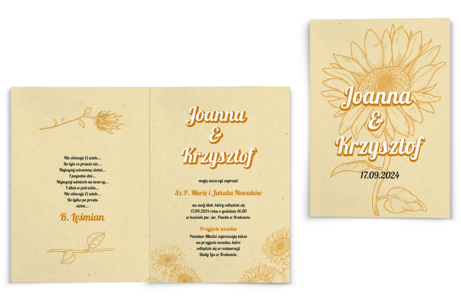 Zaproszenia ślubne Sunflowers - Składane motyw 1