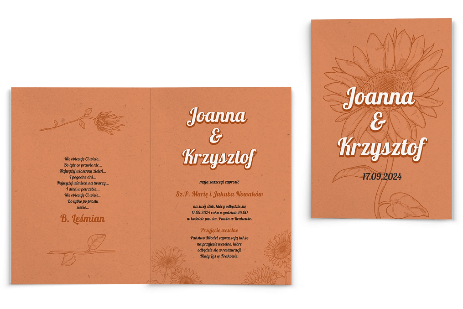 Zaproszenia ślubne Sunflowers - Składane motyw 2