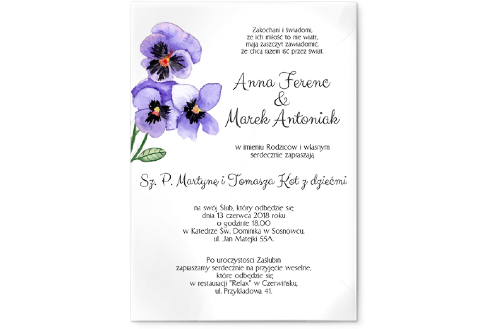 | Rozmiar zaproszenia | 148x105 mm (+- 2mm) |
