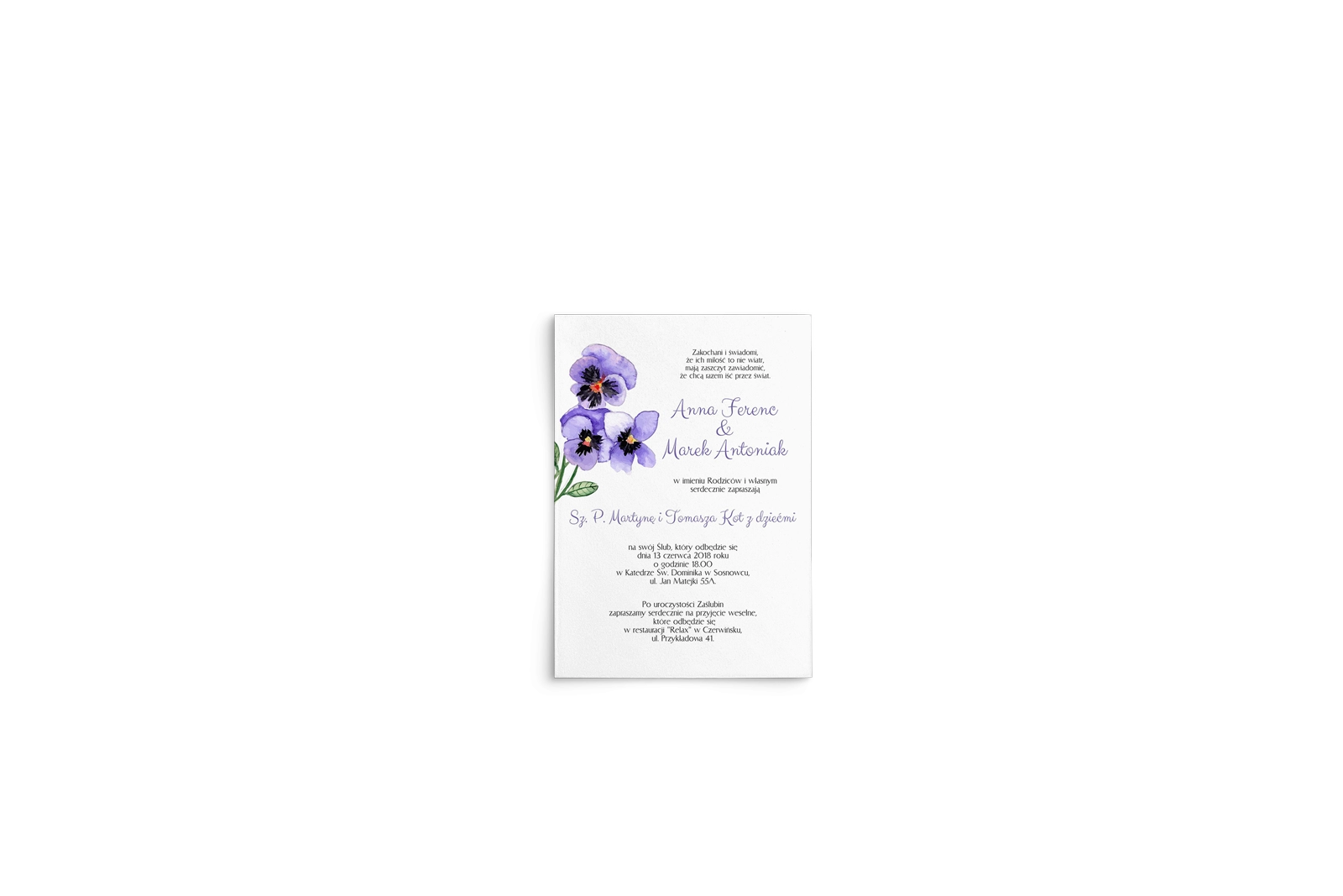 | Typ zaproszenia | Na kartach - Pionowe - Nierozkładane |