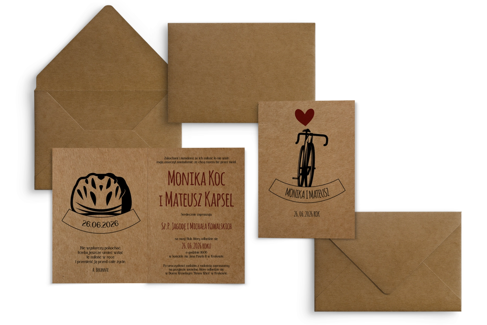 Wszystkie treści zaproszenia oraz dodatkowych wkładek są dowolnie personalizowane. Możesz zmienić każdą treść na swoim zaproszeniu. Podczas wypełniania Formularza Personalizacji opisz nam jak chcesz, aby wyglądało Twoje zaproszenie. Grafik przygotuje projekt skrojony specjalnie dla Ciebie.