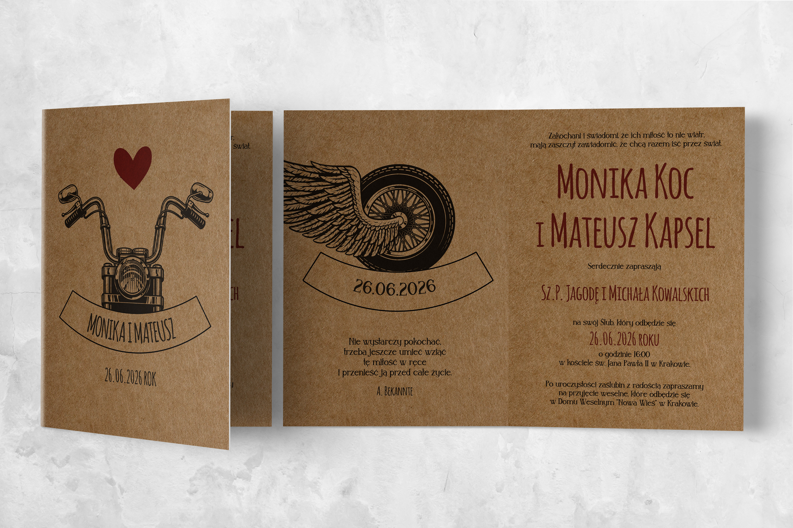 Zaproszenia ślubne Trip - Składane motyw 1