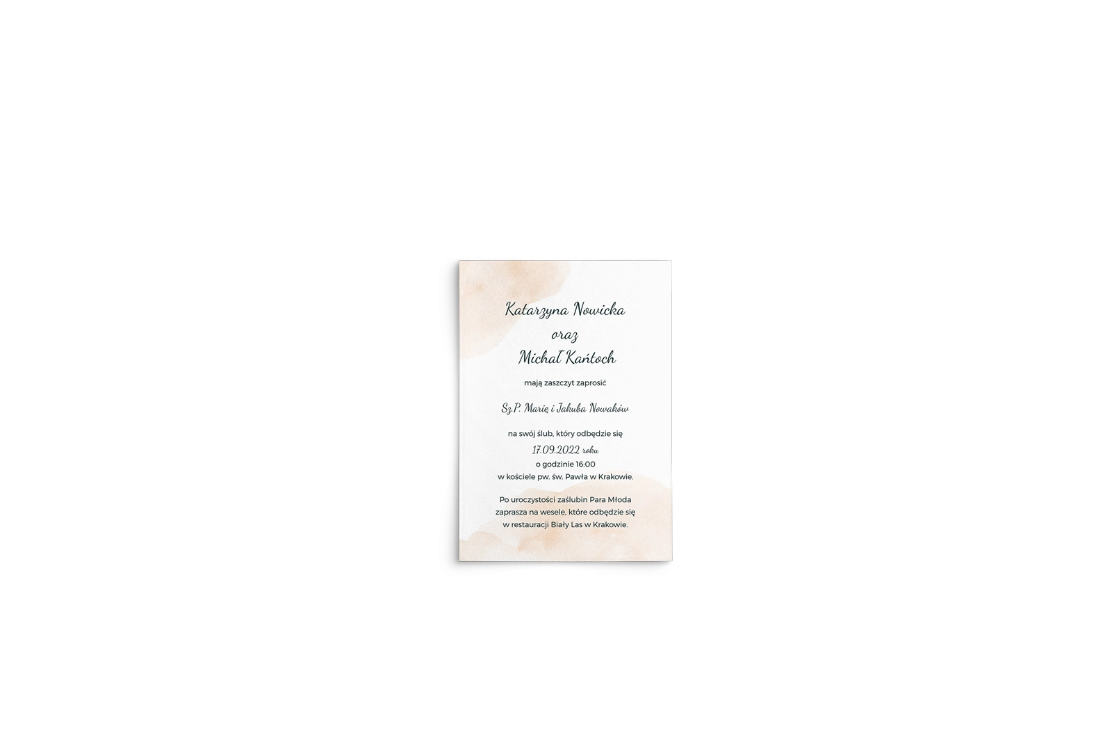Wszystkie treści zaproszenia oraz dodatkowych wkładek są dowolnie personalizowane. Możesz zmienić każdą treść na swoim zaproszeniu. Podczas wypełniania Formularza Personalizacji opisz nam jak chcesz, aby wyglądało Twoje zaproszenie. Grafik przygotuje projekt skrojony specjalnie dla Ciebie.